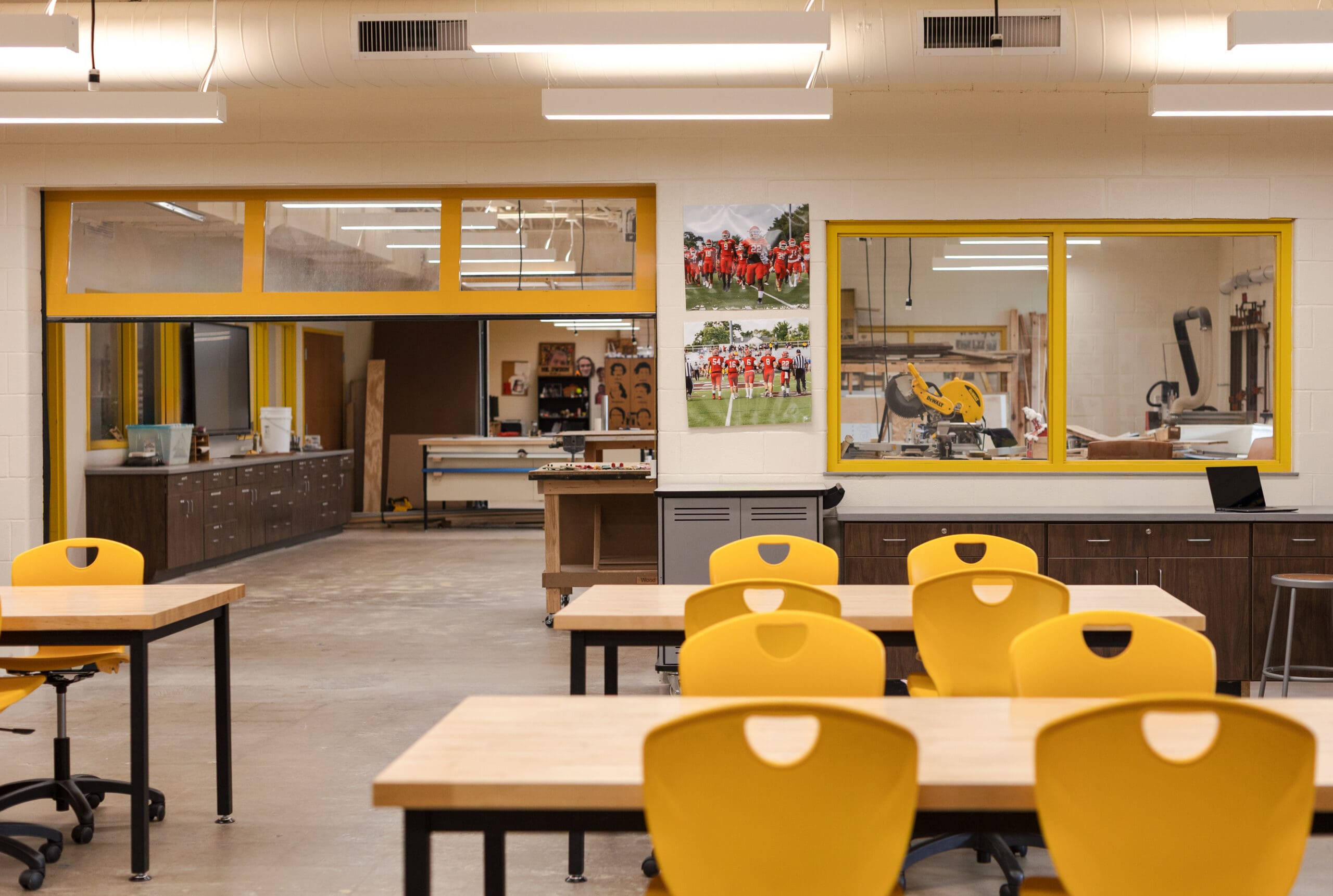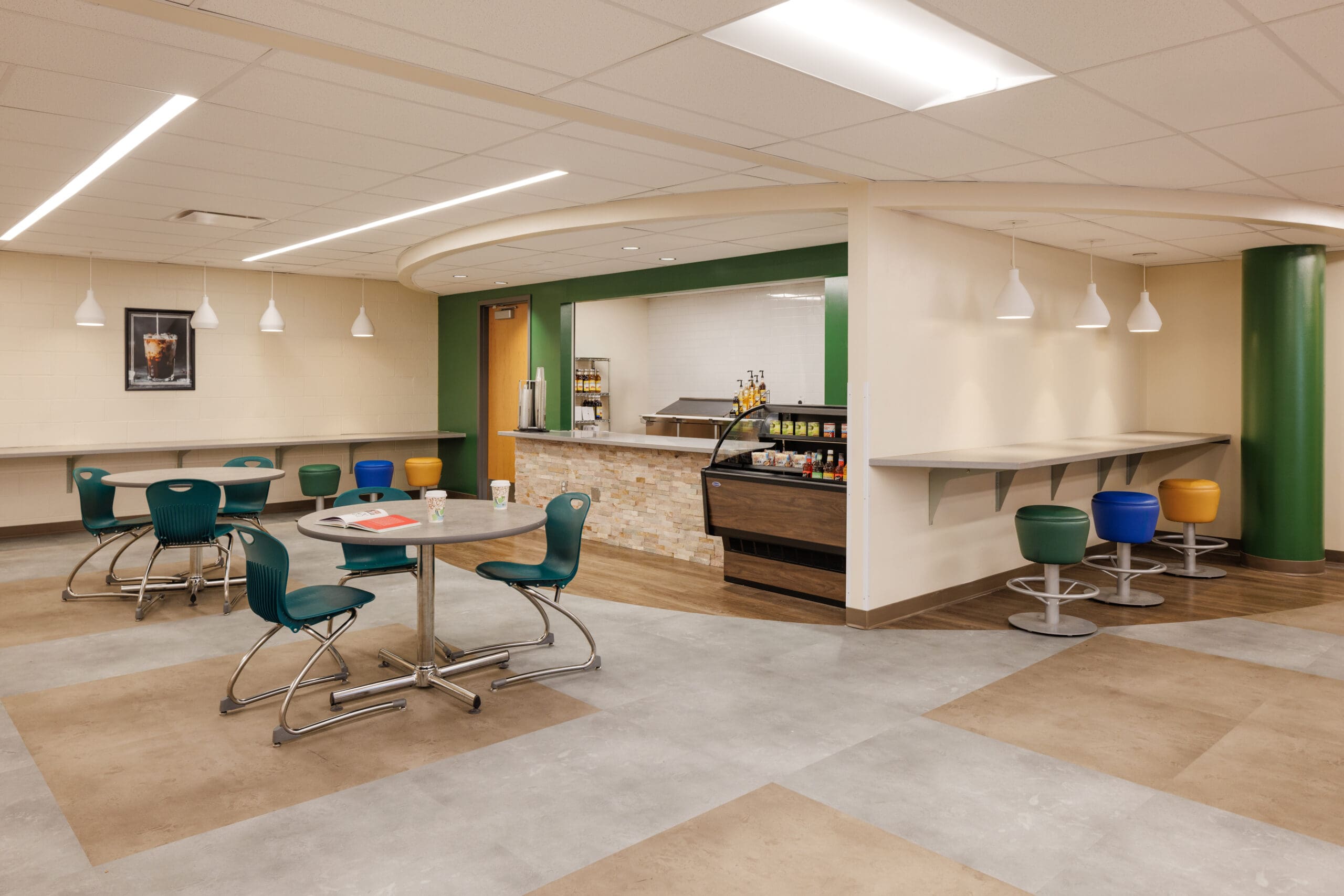 Our solution began with a unified master plan that right-sized classrooms, updated existing spaces where possible, and created a cohesive design aesthetic using color themes for intuitive wayfinding. Strategic interventions created unique, inspiring spaces throughout the building.