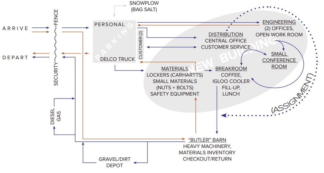 We have been working with Del-Co Water throughout our entire existence as a firm. Several years ago, they asked us to undertake a master planning effort that would reimagine their main campus. The anchor project to that master plan is the Wolfe Center, which combines maintenance facilities, training facilities, and engineering team offices to serve as a hub for their campus.